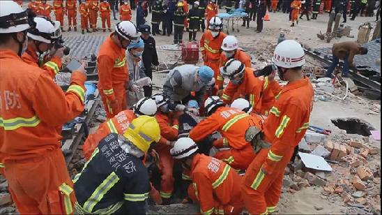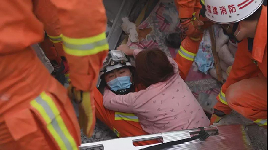 8時41分,消防指戰員從倒塌的承重柱縫隙救出1名被埋人員。 9時09分,在碎石中用手刨出了1名被埋人員……