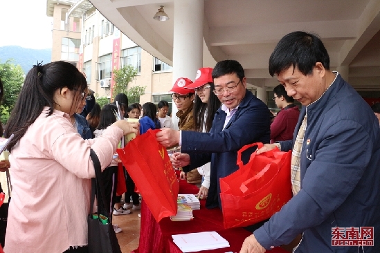 南平市應急管理局局長黎彪、調研員楊慶榮在現場發放防災減災宣傳物料 東南網記者 陳艷 攝 東南網訊(記者 陳艷 通訊員 占鋒) 5月9日,南平市應急管理局牽頭組織南平市地震局、水利局、自然資源局、衛健委、氣象局、農業農村局、教育局、消防支隊、科協、紅十字會、保險行業協會、人保財險公司等10多家單位,在閩北職業技術學院開展“防災減災”進高校宣傳活動,發放宣傳資料1萬多份,另外還通過展板展示、有獎問答、器材展示、技能演示、發放紀念品等方式普及防災減災知識和技能。南平市減災委副主任、市應急局局長黎彪及有關單位領導參加活動。 |