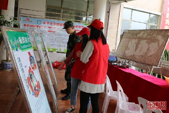 校園防災減災展板吸引學生志愿者駐足觀看 東南網記者 陳艷 攝