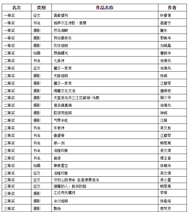 參賽作品 圖片來源:福建第九批援藏隊 為獻禮華誕,熱烈慶祝中華人民共和國成立70周年,9月福建省第九批援藏工作隊組織開展了“慶祝新中國成立70周年書畫、征文、攝影活動”大賽,評出一、二、三等獎若干名。 10月9日,“逐夢昌都 建功高原”——喜迎新中國成立70周年書畫、征文、攝影作品展評選活動在福建公寓圓滿落下帷幕。參賽的各幅作品精彩迭出,活動主題突出,多視角、多方位反映了新時代藏東明珠——昌都美好幸福的人文生活、社會風景,充分展現了閩九援隊員主動融入藏東高原、注重民族團結、奮發進取、努力作為的良好精神風貌。 活動組委會特別邀請了昌都市文化局德嘎旺姆局長,與市政府辦林孝棋副秘書長、市委宣傳部張小龍組成評審團,經過公開、公平、公正評選,共評選出一等獎5名,二等獎10名,三等獎17名。接下來,公眾號“福建第九批援藏隊”將陸續展播獎獲作品。