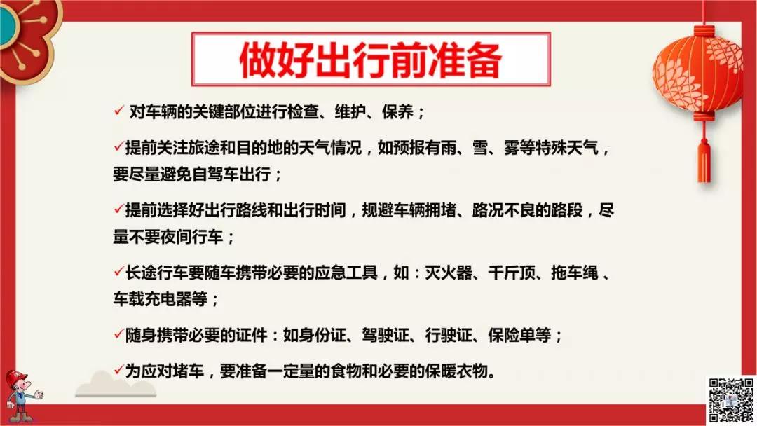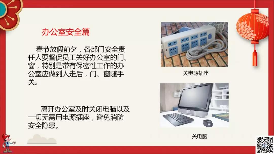 2020年春節(jié)即將來臨,越是歸心似箭 越要繃緊安全弦!企業(yè)如何確保節(jié)日期間的安全?生活中又有哪些需要警惕的風險? 這份節(jié)前安全教育培訓關乎我們每個人,一定要仔細閱讀! 節(jié)前安全檢查表 80項! 為確保節(jié)日期間的安全及節(jié)后復工復產(chǎn)能平穩(wěn)有序進行,節(jié)前的安全檢查千萬要高度重視!節(jié)前,職工思想比較活躍,精力容易分散,是生產(chǎn)事故的易發(fā)期和敏感期,要牢固樹立“以人為本,安全第一”的思想,本著“先安全后生產(chǎn),不安全不生產(chǎn)”的原則,認真做好安全檢查和員工節(jié)前安全教育工作。加強安全生產(chǎn)檢查,防止違章行為發(fā)生,確保安全生產(chǎn)受控。