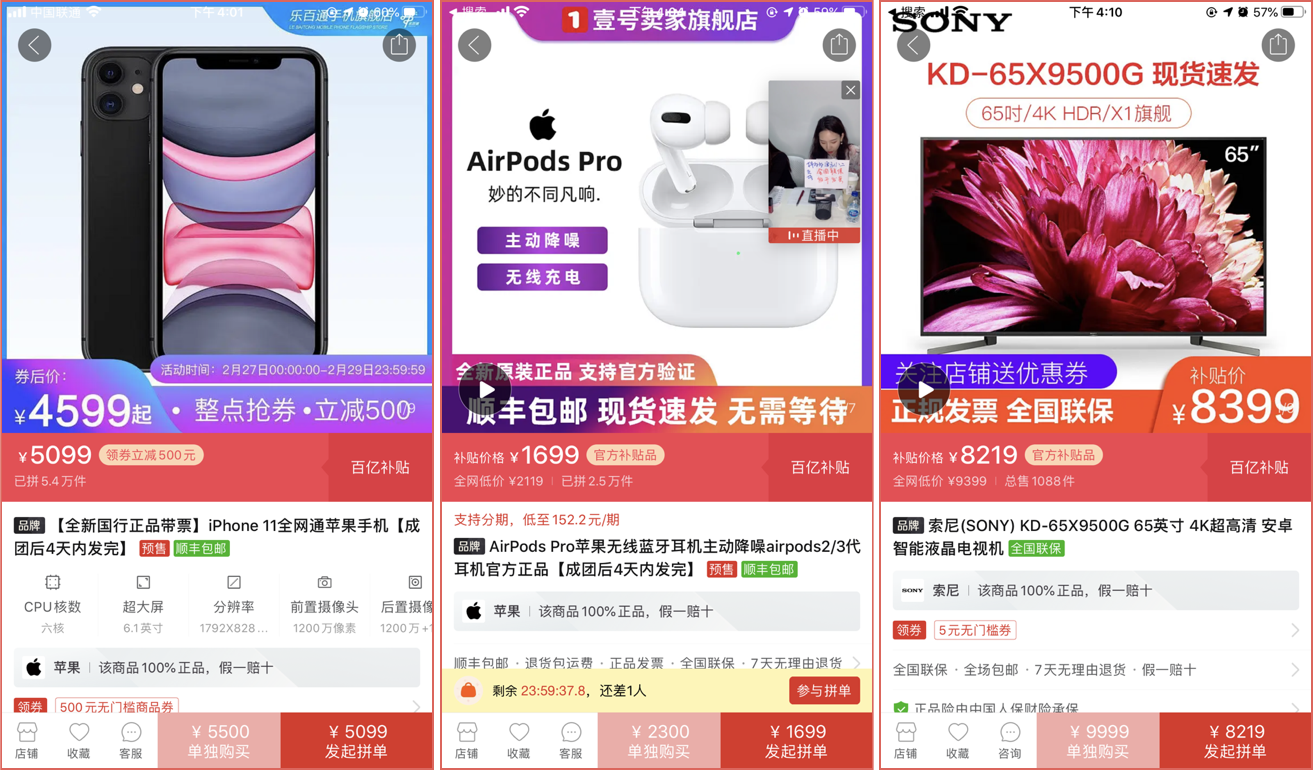 拼多多上線“百億補貼節”:索尼4K電視6折 iPhone11直降1400元