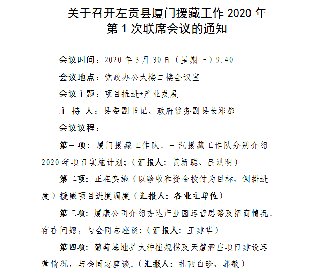 《左貢縣援藏工作聯(lián)席會議制度》建立于2019年底,由閩九援左貢工作組發(fā)起,每月由左貢縣委縣政府、閩九援左貢工作組、一汽援藏工作隊、空軍特色醫(yī)療中心援藏醫(yī)療隊及各業(yè)主單位、縣受援辦等相關各方共同參與,旨在進一步暢通溝通渠道,形成思想、行動、工作上的合力,讓各方力量更加協(xié)調(diào)有序地為左貢發(fā)展做出貢獻,切實提高各方工作效率。經(jīng)過去年底以來的實踐,左貢縣援藏工作聯(lián)席會議制度切實解決了以往援藏項目及相關工作調(diào)度隨意性大、工作重點目標難以迅速達成共識、項目推進滯后等問題,使得左貢縣援藏各項目建設有條不紊地開展,援藏工作被迅速納入左貢縣委縣政府工作總體部署,各方形成合力,推進項目和資金使用更加安全高效。 (供稿:閩九援左貢工作組) |