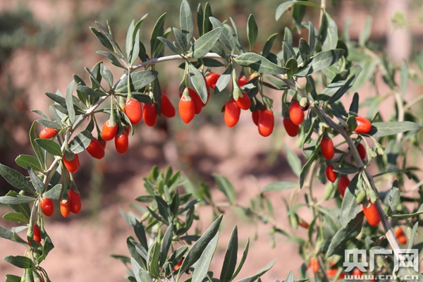 莊園里的新鮮枸杞(央廣網記者 母晨靜 攝) 7月7日,記者首先來到吳忠市同心縣河西鎮同德村的枸杞莊園。據了解,同心縣位于寧夏中部干旱帶核心區,屬于溫帶大陸性氣候,日照充足,晝夜溫差大,適宜種植枸杞這種耐旱植物。同德村是“十二五” 期間同心縣建設的最大生態移民村,2012年搬遷安置東部山區張家塬、預旺和王團3個鄉鎮的群眾1379戶6310人,其中建檔立卡貧困戶969戶4151人,未脫貧建檔人口58戶160人。
