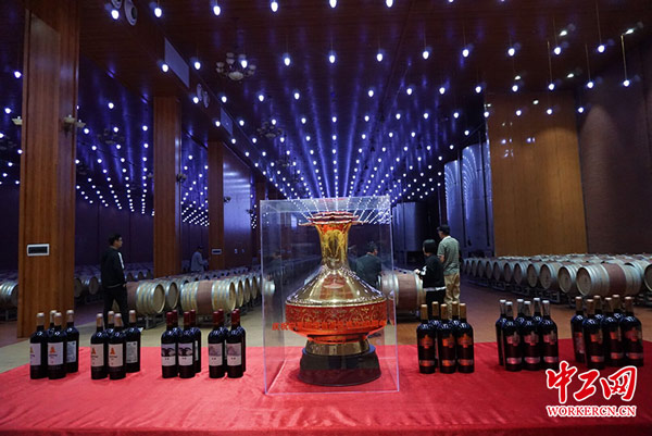韓瑞敏 攝 記者團此行來到的寧夏德龍酒莊,該酒莊成立于2008年5月,經永寧縣人民政府批準,在永寧縣賀蘭山東麓地區有償劃撥10萬畝國有荒地,充分利用和發揮閩寧鎮獨特的自然資源優勢,以市場為導向,自開發至今,德龍酒莊聯合旗下公司在德龍產業園累計投資近10億元,該產業園的建設有效帶動周邊葡萄及葡萄酒和生態觀光產業優化升級,通過示范輻射帶動周邊區域農戶高效種植業產業化體系的形成和發展,經濟效益和社會效益十分顯著。德龍酒莊為閩寧鎮農民提供技術培訓,年培訓人數達到5000人次,解決固定就業人數200人以上,帶動合同勞務合作近600戶,季節性用工累計近20000人,這對于推動勞動就業,農民收入增長起到了積極的作用。同時,葡萄種植可有效減輕當地及周邊地區的風沙危害,起到庇護周邊農田、抑制土地退化、凈化空氣、調節氣候、改良土壤、減少污染等生態循環效益作用。