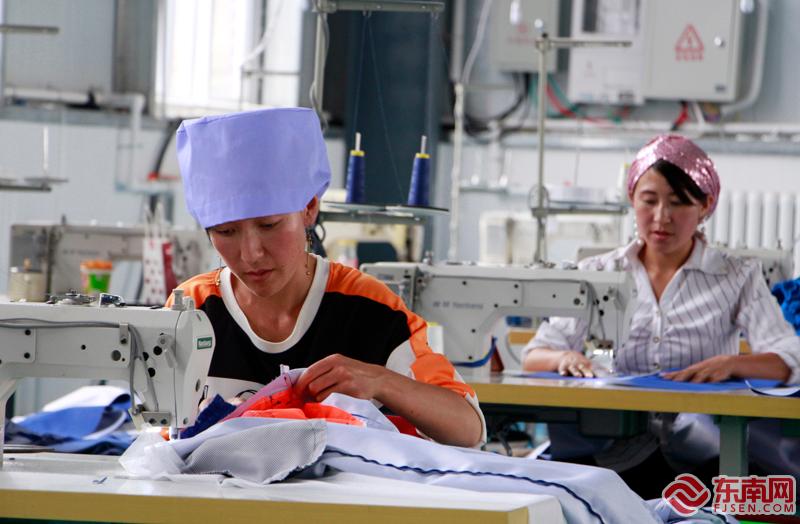 在福馬扶貧車間內(nèi)工作的當(dāng)?shù)卮迕瘛?東南記者 顏財斌 攝 2018年,占地面積150畝的頭營鎮(zhèn)福馬村建成,這是寧夏“十三五”易地扶貧搬遷就近安置點,頭營鎮(zhèn)坪樂等東部山區(qū)4個村148戶514人搬遷至此。為了確保移民群眾“搬得出、穩(wěn)得住、逐步能致富”,移民村建設(shè)中重點抓好基礎(chǔ)設(shè)施、產(chǎn)業(yè)發(fā)展、管理服務(wù)等工作。2018-2020年共投入援寧資金348萬元支持福馬村建設(shè)。 8月25日下午,當(dāng)記者走進(jìn)位于寧夏固原市原州區(qū)頭營鎮(zhèn)福馬村的扶貧車間時,便可聽見針織車滴滴答答響著不停,十多名工人們熟練地轉(zhuǎn)動著手中的縫紉布,正忙碌著趕制新學(xué)年的校服訂單。而在車間的角落,幾個小孩子快樂地玩耍,等待著父母親的下班。 海蘭是今年6月份剛剛進(jìn)入車間工作的村民,在她看來,家門口就業(yè)比遠(yuǎn)赴外地打工更加方便實在,“現(xiàn)在我從家里走路10分鐘就可以到車間上班,時間靈活,也可以照顧家庭”。與海蘭有著一樣想法的還有車間工人馬志梅。馬志梅是一名新員工,不久前與丈夫一起來到車間里工作,兩個人對面而坐,相互配合。馬志梅告訴記者,丈夫是車間的老員工,技術(shù)上比她好,所以很多時候可以教她如何做。然而,最讓馬志梅喜歡這項工作的原因是,不僅可以賺錢貼補家用,還可以方便照顧小孩。 記者注意到,就在馬志梅和丈夫的工位旁邊,他們的兩個小孩子正在一個塑料大桶里玩耍,如果工作比較忙,兩個聰明的小孩子還會給爸爸媽媽打個下手。“我家里小孩比較多,因為需要有更多的時間來照顧小孩,而這個在家門口的工作剛好很適合我的家庭情況。”馬志梅說,除了照顧小孩外,農(nóng)忙的時候全家還要騰出時間做耕地,因此這個車間靈活的工作時間也很適合她。