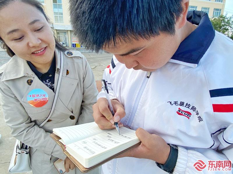 在福建飛毛腿技師學(xué)院原州分校,援寧干部和福建記者正在與學(xué)生們交流。 東南記者 顏財斌 攝 “我想去福州看看閩江,看看大海”“我想到福州工作”“我想學(xué)習(xí)更多的知識,讓生活更美好”……在寧夏原州區(qū)的福建飛毛腿技師學(xué)院原州分校,這里的師生對遠(yuǎn)道而來的福建記者特別歡迎,聊學(xué)習(xí)、談夢想、話家常。