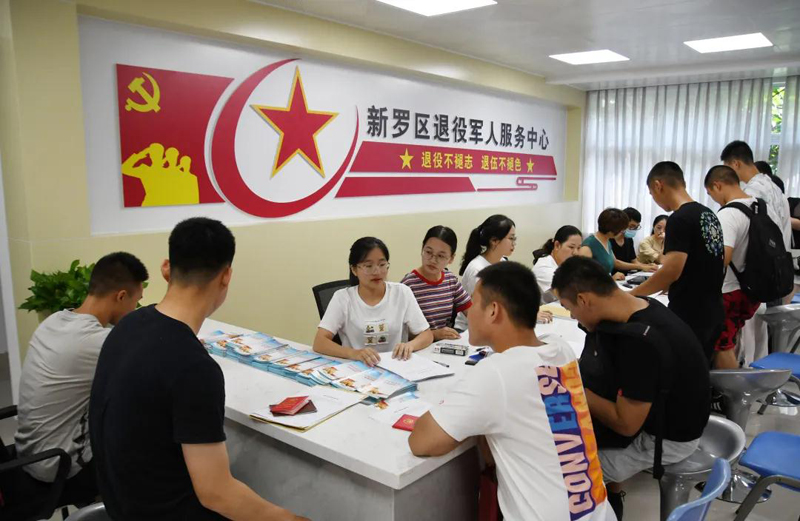 9月3日,在龍巖市新羅區的退役軍人服務中心大廳,一群意氣風發、洋溢笑容的退役士兵在服務中心工作人員的熱情服務下,有序便捷地辦理著接收報到、社保醫保關系轉接等相關手續。