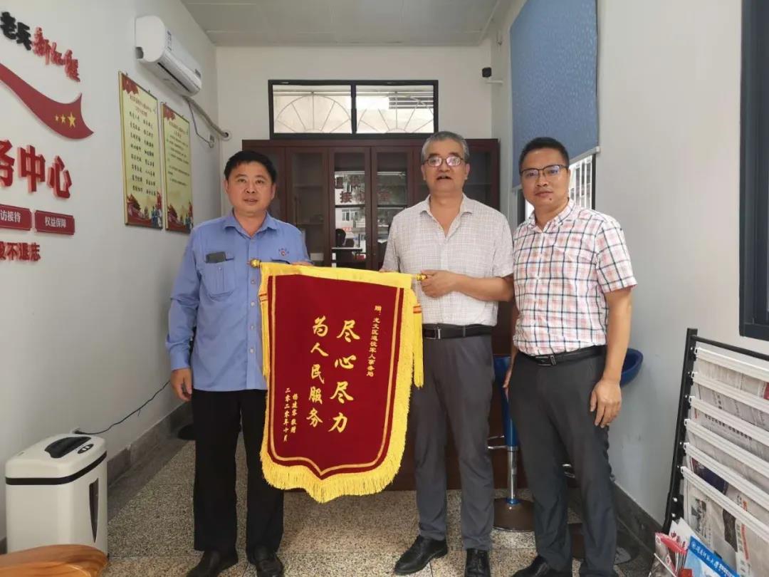 近日,漳州市龍文區景山街道朝陽社區的退役軍人楊建容,將一面寫有“盡心盡力 為人民服務”的錦旗,送到龍文區退役軍人事務局,對該局幫助他協調解決養子落戶問題表示衷心感謝。