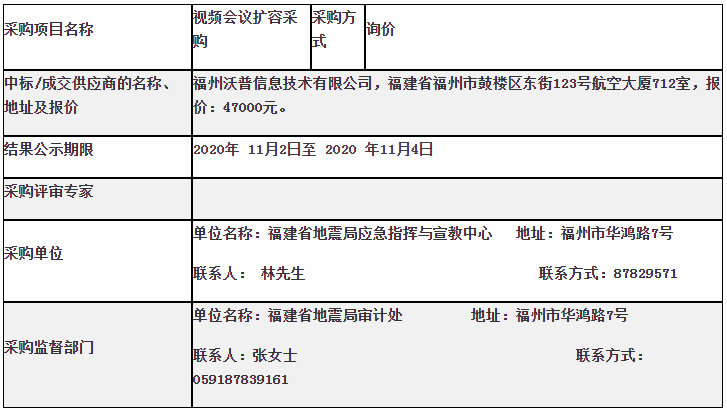 應(yīng)急指揮與宣教中心視頻會(huì)議擴(kuò)容采購(gòu)項(xiàng)目結(jié)果公示
