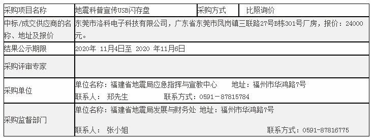應急指揮與宣教中心地震科普宣傳USB閃存盤采購結果公示