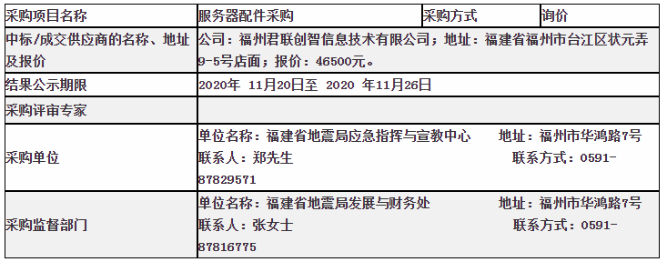 應(yīng)急指揮與宣教中心服務(wù)器配件采購(gòu)結(jié)果公告