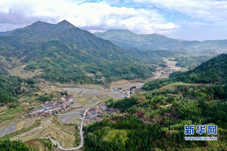 這是11月19日拍攝的大山之中的嶺下村(無人機照片)。新華社記者姜克紅 攝
