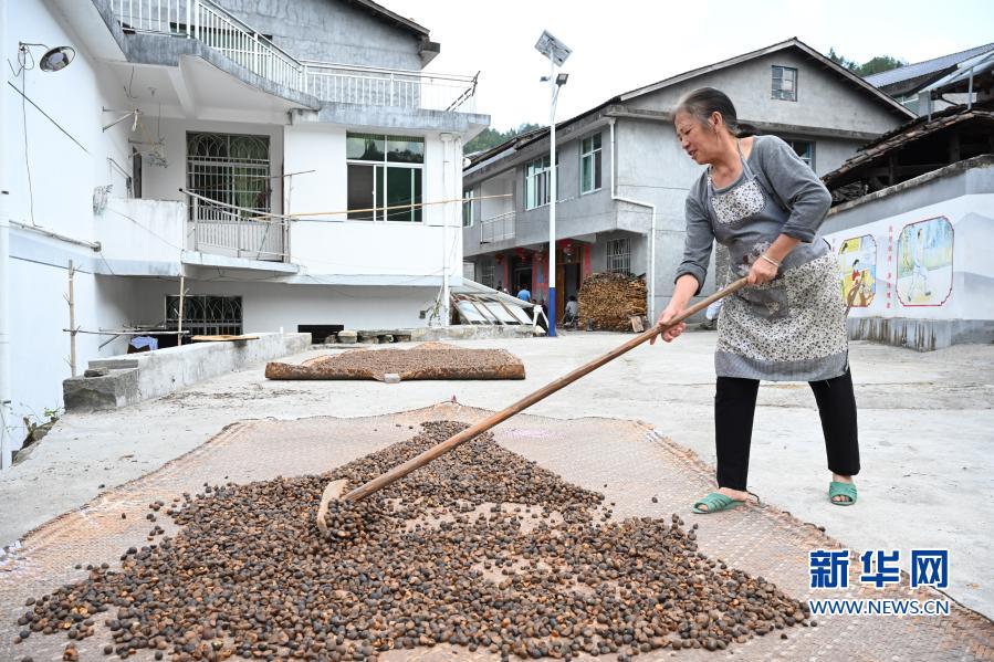 11月19日,嶺下村村民在晾曬油茶籽。油茶種植是嶺下村的主要特色農業,鄉村旅游帶動了油茶的銷售,助力村民增收。新華社記者姜克紅 攝