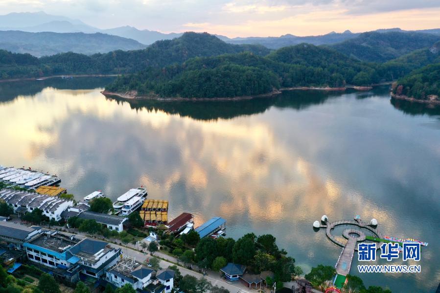 福建省泰寧縣大金湖畔的梅口鄉水際村及游客碼頭(11月19日攝,無人機照片)。新華社記者 姜克紅 攝
