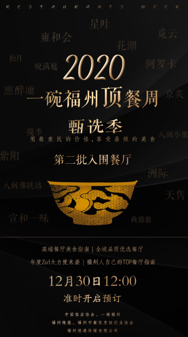 由中國飯店協(xié)會指導(dǎo),福州晚報(bào)、福州市餐飲烹飪行業(yè)協(xié)會、一碗福州主辦的2020頂餐周甄選季正式啟動后,于12月15日上午10:00開啟第一批頂餐周售賣,受到了市民們的熱烈響應(yīng)。經(jīng)過一周7天的用餐之后,你是否還意猶未盡?12月30日中午12:00,頂餐周第二批上線餐廳也即將開放席位預(yù)訂,20家TOP級別的餐飲品牌,為福州市民再次奉上一場饕餮盛宴。 評審團(tuán)嚴(yán)選菜單 今年的頂餐周甄選季特別請到中國飯店協(xié)會指導(dǎo),同時由一碗福州、福州晚報(bào)、福州市餐飲烹飪行業(yè)協(xié)會聯(lián)合發(fā)聲,多家權(quán)威機(jī)構(gòu)共同監(jiān)制,為食客的舌尖饕宴保駕護(hù)航。 12月25日,一碗福州評審團(tuán)限時集結(jié),對第二批上線的頂餐周套餐進(jìn)行嚴(yán)格的審核,針對菜單的菜品、價(jià)格、性價(jià)比等內(nèi)容提出相應(yīng)的意見與修改建議。從消費(fèi)者的角度出發(fā),為食客尋找一份精致且優(yōu)惠的菜單。