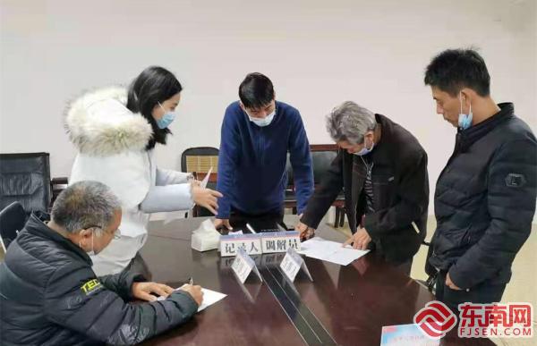 當(dāng)事人簽署協(xié)議書(shū)(常太司法所 供圖) 東南網(wǎng)莆田3月11日訊(本網(wǎng)記者 李劍軍)劍拔弩張的相鄰,因他握手言和;反目成仇的朋友,因他和好如初……他是莆田市城廂區(qū)常太司法所的一名調(diào)解員卓金飛。6年多來(lái),卓金飛共參與各類矛盾糾紛調(diào)解100余起,其中疑難復(fù)雜案件10余起,調(diào)解成功率達(dá)99%。 2013年9月,卓金飛從部隊(duì)轉(zhuǎn)業(yè)到城廂區(qū)司法局常太司法所從事人民調(diào)解工作,從未系統(tǒng)學(xué)習(xí)過(guò)法律知識(shí)的他深感工作十分吃力。為做好司法調(diào)解工作,成為一名合格的基層人民調(diào)解員,他自費(fèi)去進(jìn)修心理學(xué)專業(yè)知識(shí),利用休息時(shí)間購(gòu)買(mǎi)閱讀法律書(shū)籍,補(bǔ)充法律知識(shí)。正因?yàn)橛辛俗銐虻闹R(shí)儲(chǔ)備,讓他在處理日常的糾紛時(shí),更加地得心應(yīng)手。 2020年11月,吳某國(guó)和吳某明本是一對(duì)要好的兄弟,因弟弟吳某明私自將兩家共有的土地與鄰居置換,便產(chǎn)生了本不該發(fā)生的糾紛。“置換的土地里面,部分所有權(quán)應(yīng)是屬于我們的,在置換前卻沒(méi)有和我們有任何表示。”吳某國(guó)的妻子對(duì)此產(chǎn)生了質(zhì)疑。在了解情況后,卓金飛馬上介入調(diào)解,避免事態(tài)進(jìn)一步擴(kuò)大。 “兩家其實(shí)本沒(méi)有什么隔閡糾紛,主要是事先沒(méi)有做好溝通。”卓金飛告訴東南網(wǎng)記者,在經(jīng)過(guò)多次多方協(xié)商后,對(duì)幾家的土地財(cái)產(chǎn)進(jìn)行合理分配,得到當(dāng)事人的一致同意,并達(dá)成了共同協(xié)議。“看到他們和好如初,我們也感到十分欣慰。”卓金飛露出了燦爛的笑容。