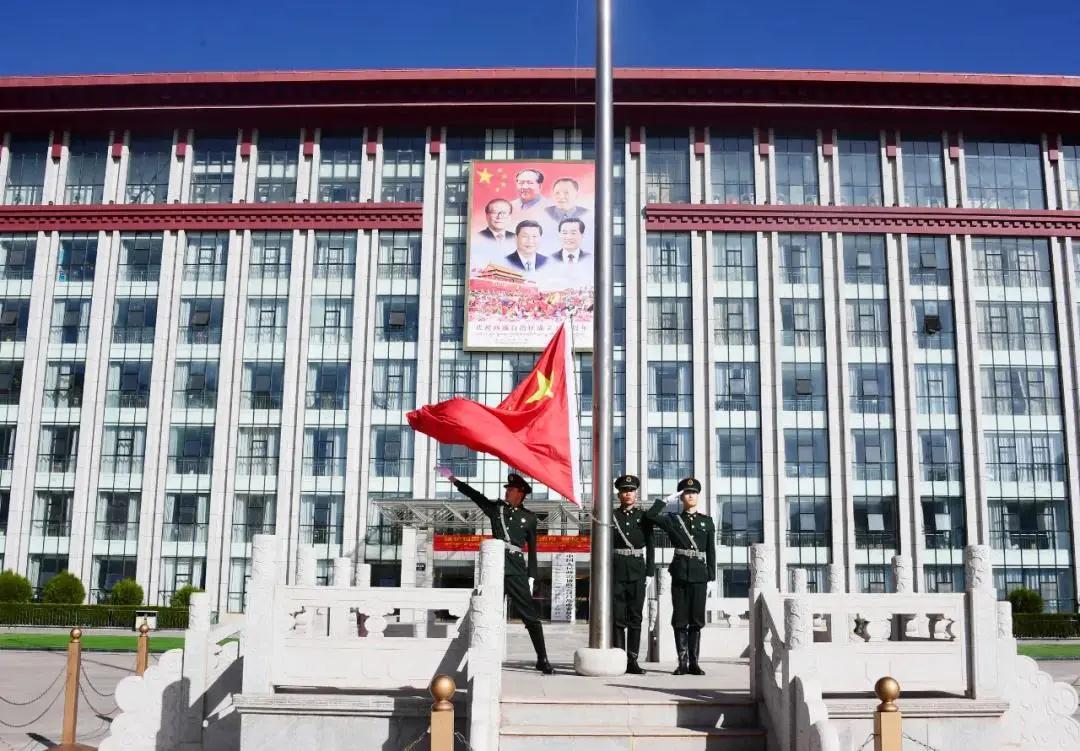 當日,福建援藏工作隊市直隊員們與昌都各族各界干部群眾聚集在解放廣場,升國旗、唱國歌,慶祝西藏百萬農奴解放紀念日。上午10時,伴隨著雄壯的《義勇軍進行曲》,鮮艷的五星紅旗冉冉升起,在藍天麗日之下高高飄揚。
