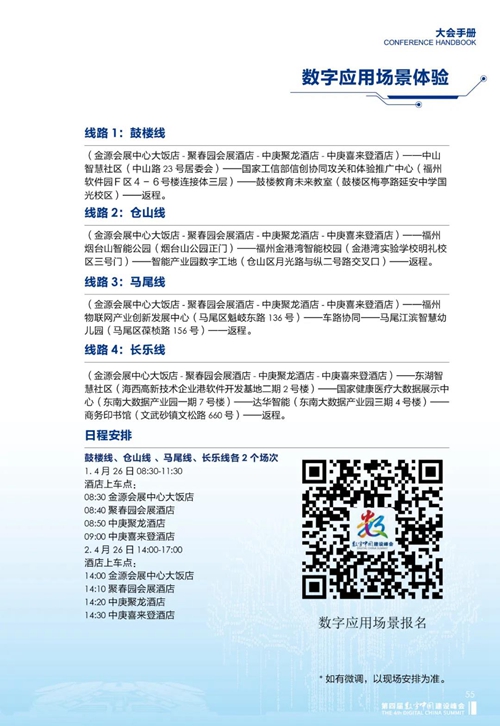 08 在數(shù)字應(yīng)用場(chǎng)景體驗(yàn)的部分 詳盡介紹了 鼓樓線、倉(cāng)山線、馬尾線、長(zhǎng)樂(lè)線 四條體驗(yàn)路線的基本信息 心動(dòng)不如行動(dòng) 速速掃碼報(bào)名吧!