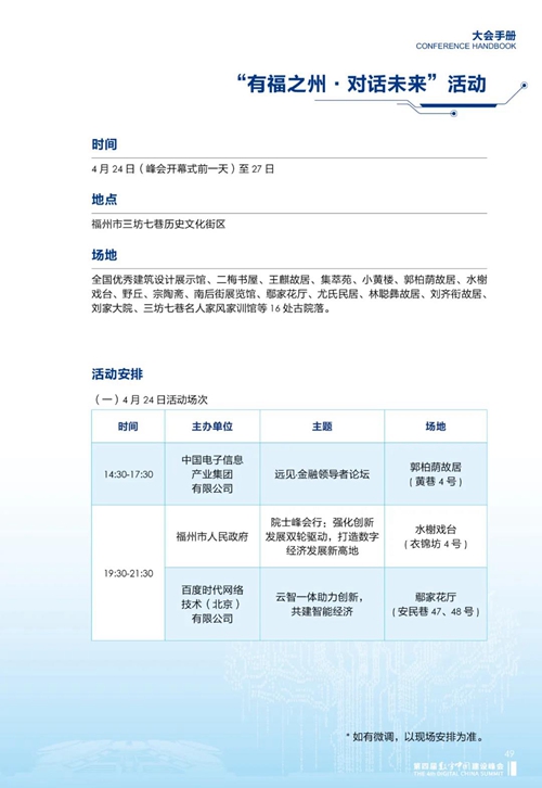 07 接下來(lái) 是第四屆數(shù)學(xué)中國(guó)建設(shè)峰會(huì)的 “有福之州·對(duì)話未來(lái)”活動(dòng) 和“閩江夜話”活動(dòng) 時(shí)間、地點(diǎn)及詳細(xì)的活動(dòng)安排 干貨滿滿,想你所想~