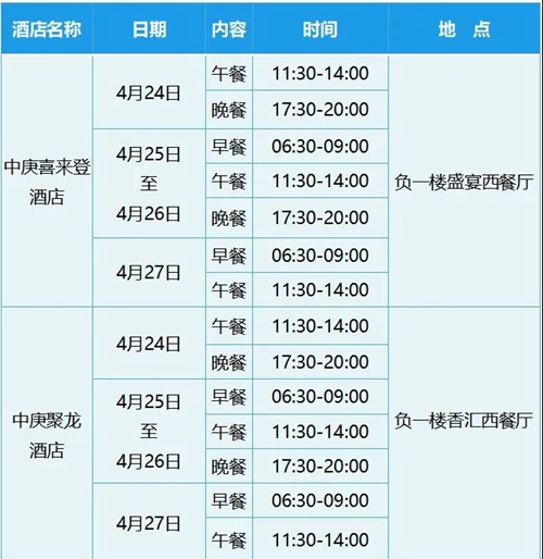 第四屆數字中國建設峰會 后勤服務保障指南 來了! 現場簽到地點 酒店住宿安排 接駁車發車時間 …… 你想知道的都在這里! 第四屆數字中國建設峰會 后勤服務保障指南 目錄 1. 簽到及證件 1.1 現場簽到 1.2 證件 1.3 大會物料包 2. 住宿安排 2.1 大會酒店 2.2 酒店咨詢臺 2.3 用餐服務 3. 交通服務 3.1 接機/站 3.2 注冊中心接駁 3.3 會間接駁 3.4 送機/站 4. 醫療服務 1. 簽到及證件 1.1 現場簽到 注冊中心設置在海峽國際會展中心南廣場西側大棚。注冊中心將為參會嘉賓提供簽到、證件及物料領取、酒店入住憑條領取、信息咨詢等服務。請攜帶您在線注冊時所使用的身份證件原件前往注冊中心辦理現場簽到。建議您提前下載閩政通APP并申領“八閩健康碼”,在簽到前配合工作人員完成健康狀態的核驗。 注冊中心地點: 海峽國際會展中心南廣場西側大棚 注冊中心開放時間: 4月24日 8:00-24:00 4月25日 8:00-當日會議結束 4月26日 8:00-當日會議結束 峰會將安排從機場/火車站至注冊中心接駁巴士及注冊中心往返參會嘉賓下榻酒店的接駁巴士。請留意峰會乘車處指示 1.2 證件 參會嘉賓將獲得印有個人照片、姓名的證件。嘉賓證是參會嘉賓進入峰會現場的身份憑證,請在參會期間佩戴,不可轉借他人使用。若遇到證件遺失等情況,請移步注冊中心信息咨詢窗口辦理掛失手續。 1.3 大會物料包 內含峰會手冊、會務套裝及紀念品等。 2. 交通服務 2.1 大會酒店 峰會期間,為參會嘉賓共安排四家指定酒店住宿,分別是中庚喜來登酒店、中庚聚龍酒店、聚春園會展酒店、福州南三迪希爾頓逸林酒店。具體下榻酒店將在您完成簽到后告知。與會嘉賓在酒店的其他個人消費,請嘉賓自理。 2.2 酒店咨詢臺 本次峰會住宿保障時間為4月24日9:00至4月27日2:00。屆時,四家指定酒店將設咨詢服務臺,提供相應配套服務,包括食宿保障、交通保障、醫療保障、會務咨詢等。 2.3 用餐服務 峰會將在各下榻酒店為參會嘉賓提供工作餐,形式為自助。請憑峰會證件/餐券入場就餐。具體信息詳見以下用餐安排表: