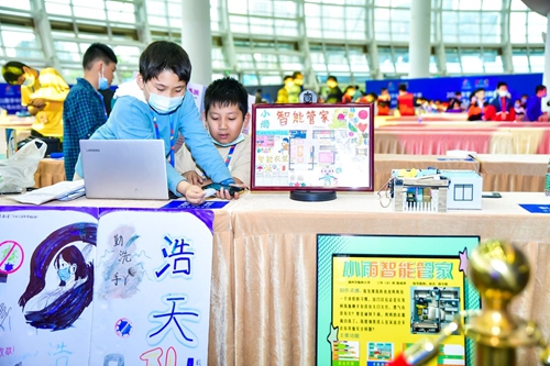 人工智能機器人比賽 以《智能家庭小助手》為主題的創意編程搭建比賽共有20支隊伍進入決賽,參賽戰隊將投稿的創意作品進行現場展示。選手們發揮自身的創造力和想象力搭建作品,并通過周邊物料對自己的作品展區進行布置,利用不同的裝飾風格來展示自己的戰隊文化。現場展現了AI讀書數娃、智能搭配衣柜、家庭智能控制中心、分體式樓梯清洗系統等各種創意作品。
