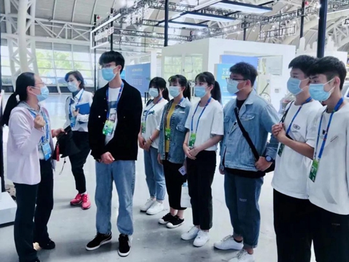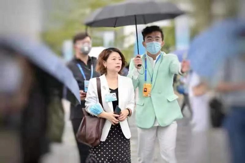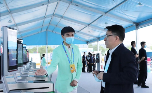 看!再往里面走一點(diǎn),在展館入口的閘機(jī)處,“小茉莉”們指引前來(lái)參展的嘉賓和觀眾有序經(jīng)過(guò)閘機(jī),進(jìn)行體溫測(cè)量、人臉識(shí)別。 新聞中心志愿者