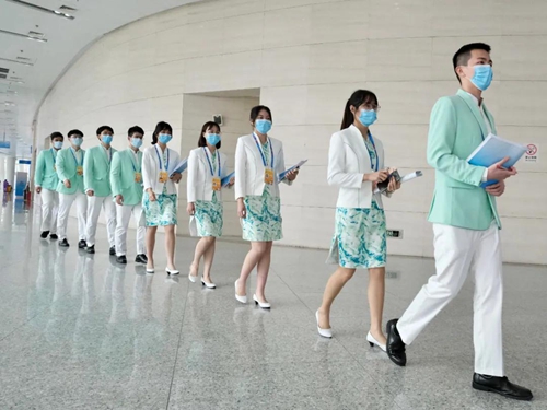將視線(xiàn)轉(zhuǎn)向各個(gè)酒店,“小茉莉“們也在這里迎接大家。在酒店入口引導(dǎo)參觀者乘車(chē)與入住,在儲(chǔ)物間整理參會(huì)手冊(cè)與紀(jì)念品,在餐廳引導(dǎo)就餐與督餐,在咨詢(xún)處為入住者與媒體答疑解惑……專(zhuān)業(yè)、細(xì)致的“小茉莉”們?yōu)楸U媳敬畏鍟?huì)的順利舉行,在幕后默默獻(xiàn)力。 南北火車(chē)站志愿者