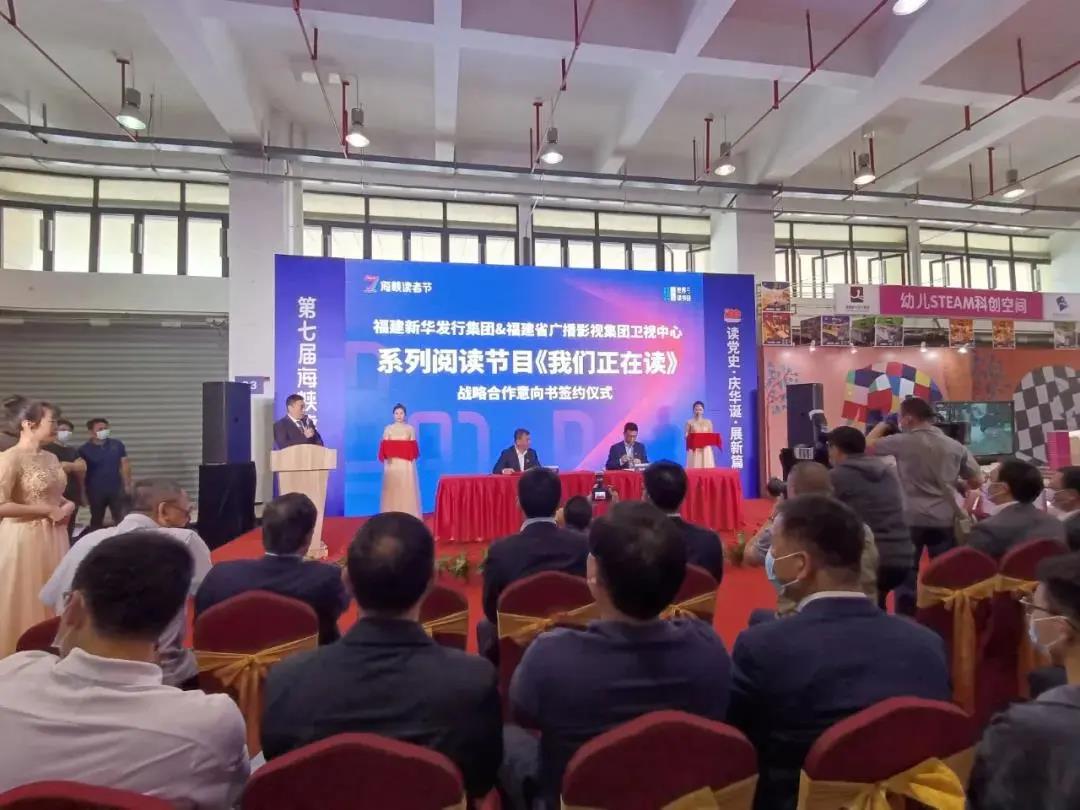 4月22日上午,海峽出版發行集團所屬的福建新華發行集團還和福建省廣播影視集團衛視中心簽訂了系列閱讀節目《我們正在讀》戰略合作意向書。省廣播影視集團黨組副書記、總經理莊志松,福建教育學院黨委委員、副院長張志剛,海峽出版發行集團黨委副書記嚴桂忠出席簽約儀式。海峽出版發行集團黨委委員、副總經理何強,省廣播影視集團黨組成員、副董事長陳加偉上臺簽約。