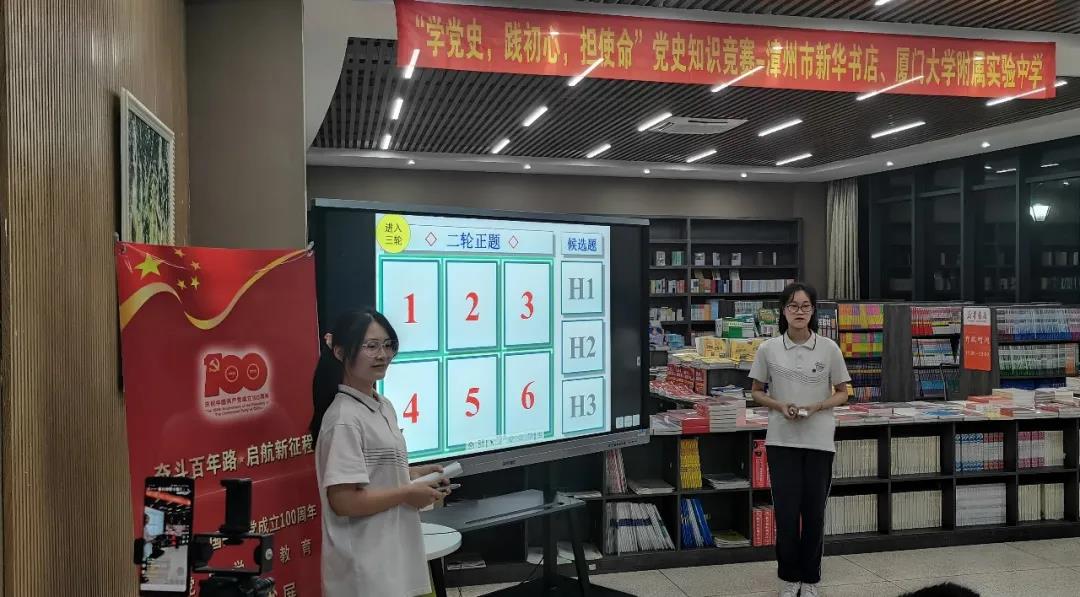 5月14號(hào)晚,福建新華發(fā)行集團(tuán)漳州分公司與廈門大學(xué)附屬實(shí)驗(yàn)中學(xué)在校園內(nèi)的新華書店開(kāi)展了一場(chǎng)別開(kāi)生面的黨史知識(shí)競(jìng)賽,以此回顧黨的崢嶸歲月,謳歌黨的光輝業(yè)績(jī),繼承和發(fā)揚(yáng)黨的優(yōu)良傳統(tǒng)與作風(fēng),獻(xiàn)禮建黨百年。