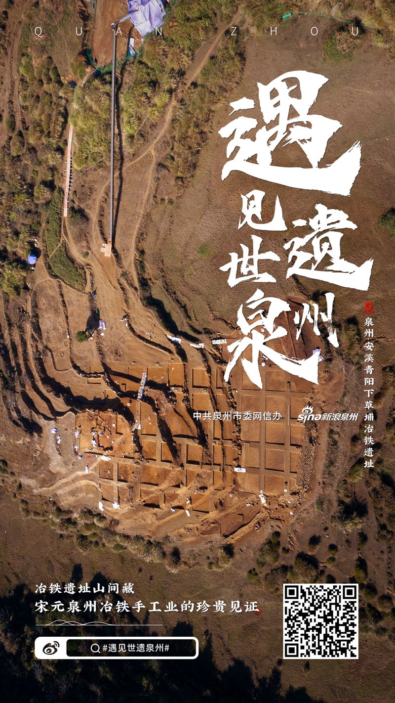安溪青陽下草埔冶鐵遺址位于泉州西北約70公里的戴云山區,其所在的青陽村曾是宋代官方設立的專職鐵場之一,其冶鐵業在11世紀時極為興盛,產品經晉江支流西溪運往泉州港口。下草埔遺址經考古發現有冶鐵遺址、古礦洞、古道等遺存。它是宋元時期泉州冶鐵手工業的珍貴見證,與泉州的陶瓷生產基地共同展現了宋元泉州強大的產業能力和貿易輸出能力,同時顯示出宋元泉州海洋貿易對泉州內陸腹地經濟發展的積極作用。