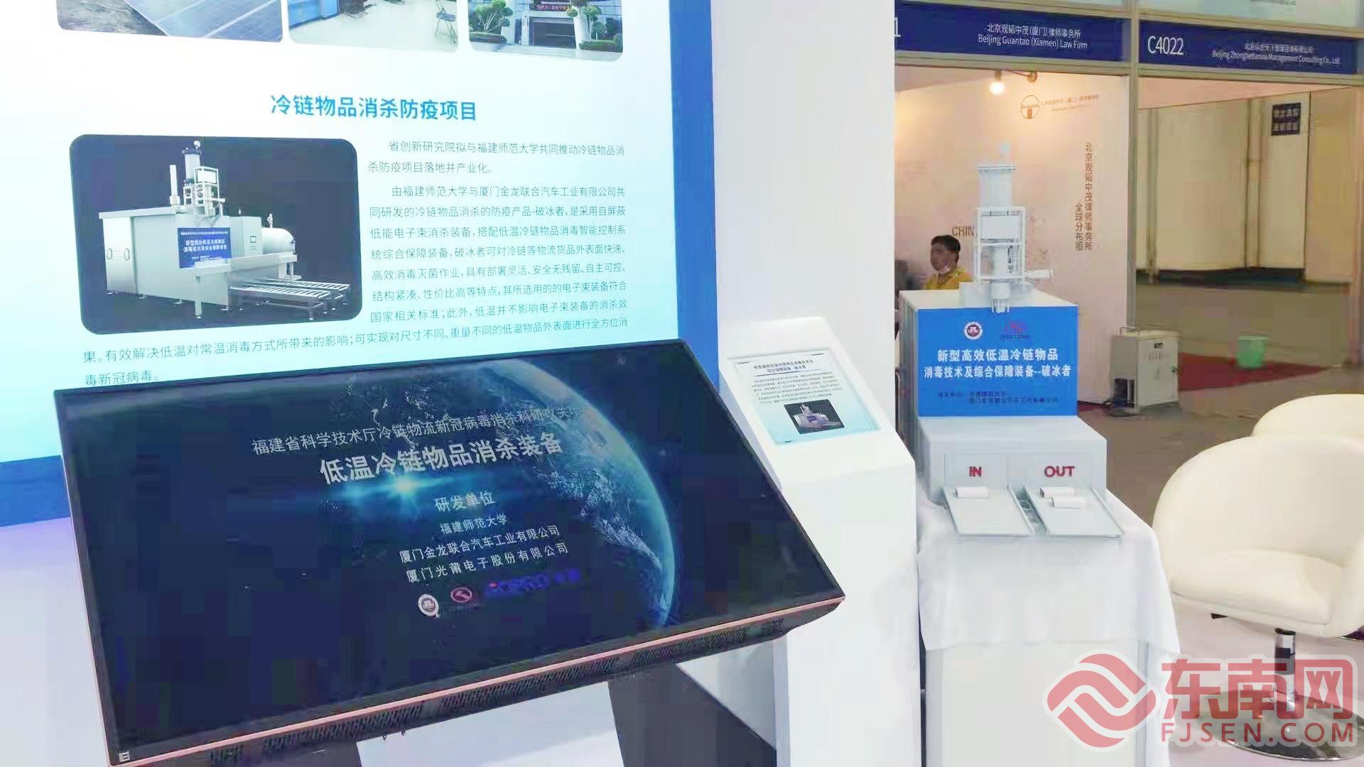 省創(chuàng)新研究院展區(qū) 東南網(wǎng)記者盧金福 攝 展區(qū)中間的實(shí)物展位展出了量子云碼技術(shù)、控制力矩陀螺、高速光譜儀、KCOB集魚燈、新型高效低溫冷鏈物品消毒技術(shù)及綜合保障裝備等“高精尖”科技創(chuàng)新產(chǎn)品。投洽會(huì)期間,省創(chuàng)新研究院將推出一批項(xiàng)目參與福建省重大項(xiàng)目簽約儀式。