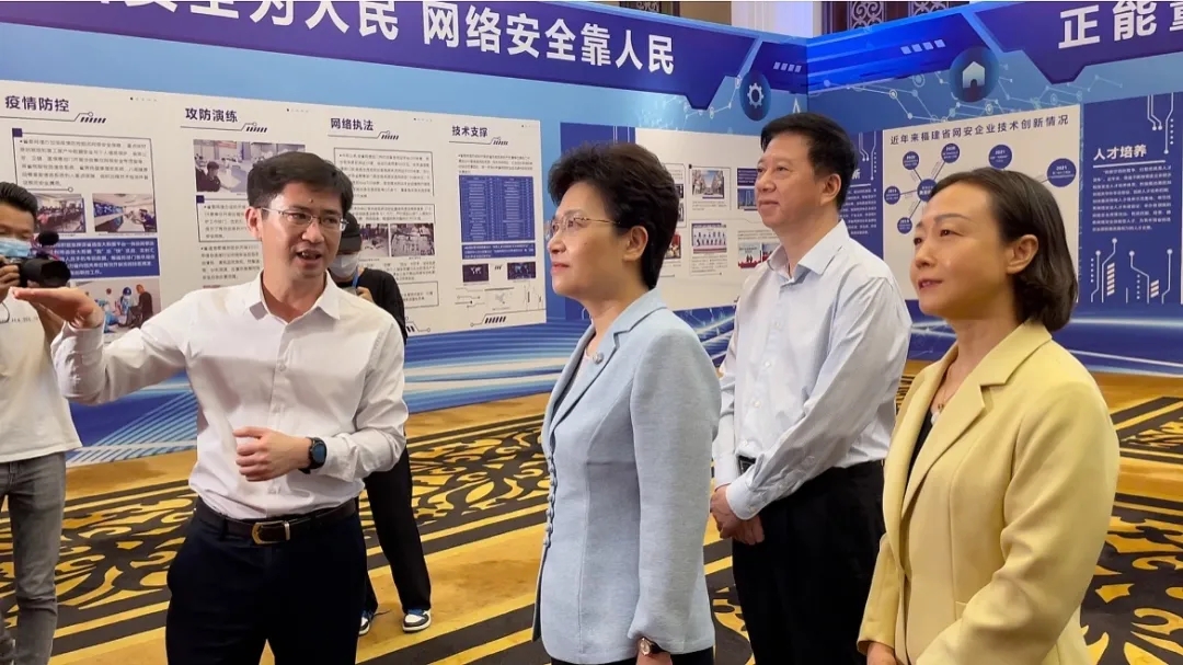 “福建省網(wǎng)信人才培養(yǎng)示范基地”授牌儀式 開(kāi)幕式上宣布了福州市成功申辦2023年國(guó)家網(wǎng)絡(luò)安全宣傳周活動(dòng),還啟動(dòng)了“百家網(wǎng)絡(luò)媒體進(jìn)萬(wàn)家”網(wǎng)絡(luò)安全宣傳活動(dòng)和第二屆“閩盾杯”網(wǎng)絡(luò)空間安全大賽,舉行了“福建省網(wǎng)信人才培養(yǎng)示范基地”授牌儀式。開(kāi)幕式后,邢善萍、郭寧寧等參觀了全省網(wǎng)絡(luò)安全成果展。