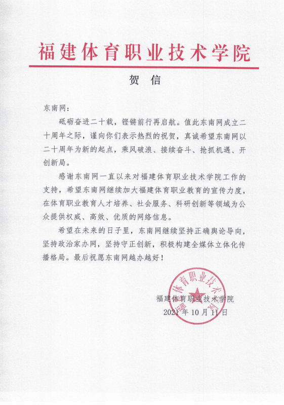 福建體育職業技術學院賀信