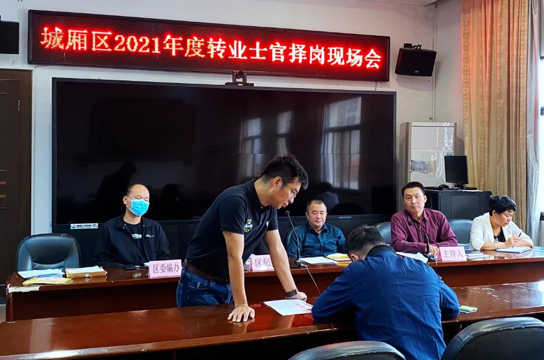 選崗會上,城廂區退役軍人事務局黃鵬遠局長向今年光榮退役的轉業士官表示熱烈歡迎,并對他們在部隊所作的貢獻給予充分肯定,希望他們要提升政治站位,堅定理想信念,永葆軍人本色,盡快轉變角色;區退役局副局長楊勇宣讀了《城廂區關于2021年度轉業士官實行“公開職位、依序擇崗”的通知》。10名轉業士官按照量化考核得分從高到低依次公開選崗,并現場簽字確認,選崗結果當場公布。崗位安置工作全程由區紀檢工作人員進行監督,充分體現了公開、公平、公正的安置原則,實現了“陽光安置”。