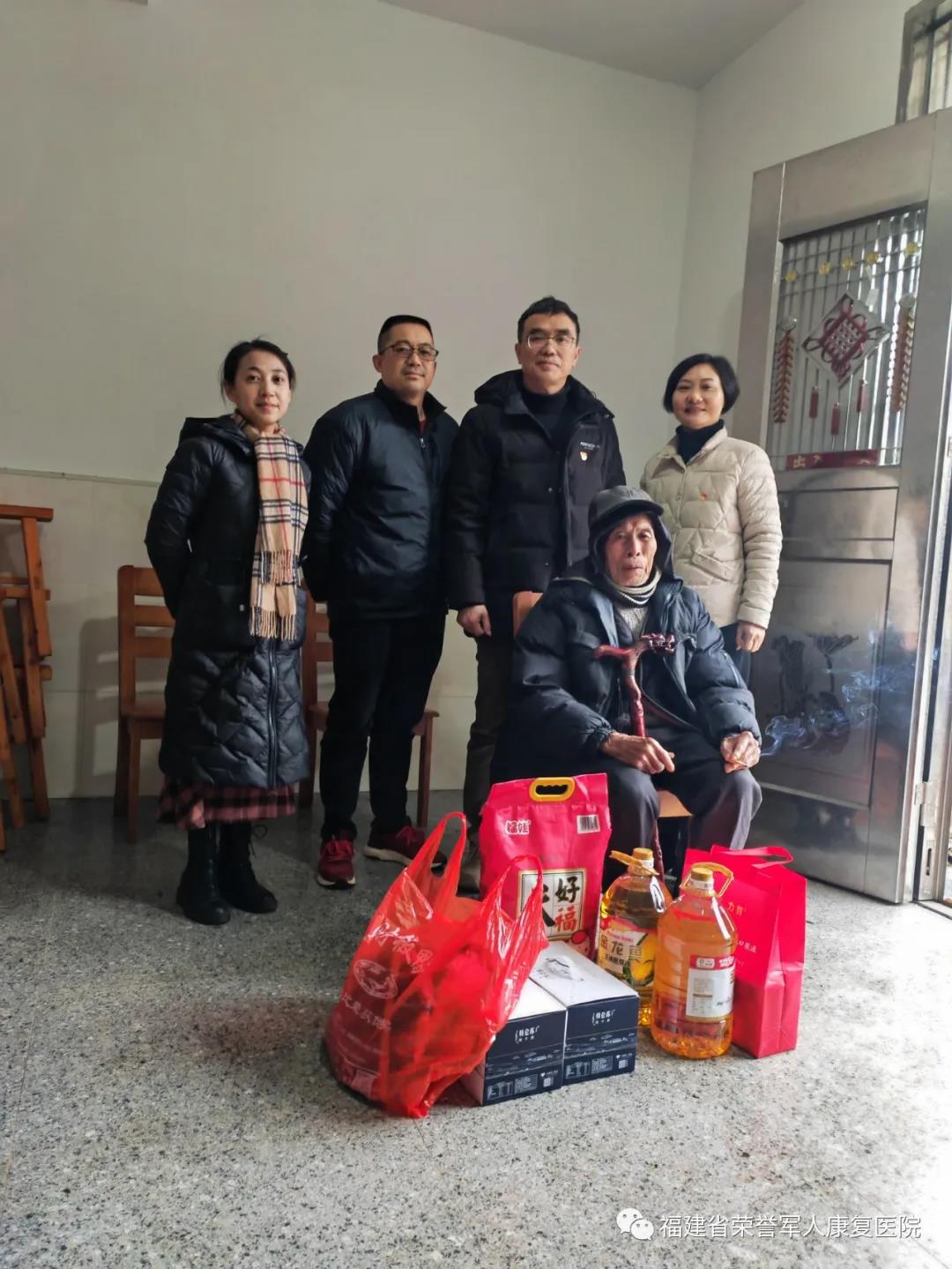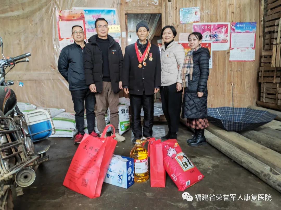 在新春佳節即將來臨之際,福建省榮譽軍人康復醫院黨委班子成員帶隊分別前往浦城、政和、建甌迪口鎮、建甌吉陽鎮等地看望慰問常態化聯系退役軍人。向他們送上慰問品,致以節日問候和美好祝福。