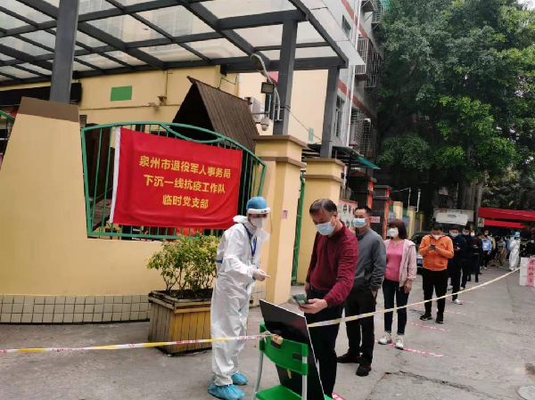 “緊急救助利索,值守防護(hù)規(guī)范,任務(wù)一旦分解,總是最快落實(shí)。” “這幾天,他們每天堅(jiān)持到凌晨2點(diǎn)多回家,與部隊(duì)軍人唯一的區(qū)別就是沒(méi)穿軍裝。” 連日來(lái),泉州市鯉城區(qū)開(kāi)元街道的干部紛紛點(diǎn)贊抗疫中這支特別靚麗的隊(duì)伍,這是由退役軍人蔡海洋組織的街道退役軍人志愿服務(wù)隊(duì)。3月13日,泉州城區(qū)出現(xiàn)疫情的第一時(shí)間,44歲的開(kāi)元街道退役軍人服務(wù)隊(duì)隊(duì)長(zhǎng)蔡海洋疾速發(fā)動(dòng)81名退役軍人,分成14支小分隊(duì),當(dāng)天分赴各個(gè)社區(qū)核酸檢測(cè)點(diǎn)投入抗疫。 “若有戰(zhàn) 、召必回”!在我省新一輪疫情防控阻擊戰(zhàn)中,與鯉城區(qū)一樣,各級(jí)退役軍人事務(wù)部門(mén)紛紛發(fā)動(dòng)退役軍人組成抗疫志愿服務(wù)隊(duì),全力守護(hù)安全防線,成為各地抗疫的“硬核力量”。 這是一陣陣非常時(shí)期的“集結(jié)號(hào)” “帶隊(duì)的是一名軍轉(zhuǎn)干部,曾經(jīng)擔(dān)任市疫情防控督導(dǎo)組組長(zhǎng),他帶著一支精干隊(duì)伍下來(lái),大家原本高度緊張的心情馬上得以紓解。”3月22日,談起這幾天抗疫歷程,泉州市豐澤區(qū)東湖街道松林社區(qū)的干部紛紛激動(dòng)地提到這名軍轉(zhuǎn)干部——泉州市退役軍人局局長(zhǎng)唐良元。 泉州市豐澤區(qū)是這一波疫情主戰(zhàn)區(qū),來(lái)勢(shì)兇猛,很多社區(qū)人員力量告急。唐良元火速帶著41名精選的干部,穿上防護(hù)服,下沉到人員流動(dòng)極大的松林社區(qū)第一線。進(jìn)駐第一天就成立疫情防控指揮部,在社區(qū)統(tǒng)一安排下,下設(shè)5個(gè)工作組,主動(dòng)亮旗幟、亮身份、比擔(dān)當(dāng)、比作為,不分晝夜配合開(kāi)展核酸檢測(cè)、摸排流調(diào)、隔離管控等工作,這支隊(duì)伍指揮有力、運(yùn)轉(zhuǎn)有序、服務(wù)有效,為社區(qū)疫情防控筑起“防護(hù)網(wǎng)”。