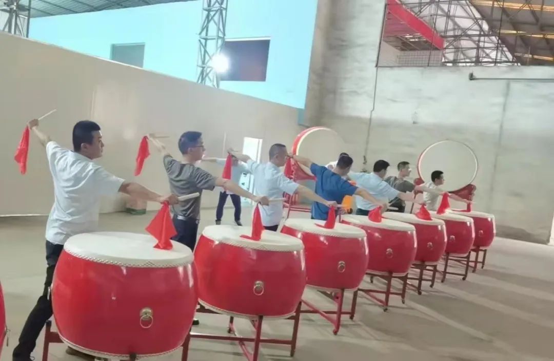 葉春林說:“平時大家工作都忙,只有下班抽時間訓練,大家都沒經驗,不斷地在磨合。而且我的節奏感不是很好,為了跟上大家的節奏,回家后我會再看幾遍訓練視頻,找找問題,自己在家再對著桌子敲一敲,努力跟上大家的節奏,把鼓點打到一處去。” 戰鼓表演需要所有演奏者長時間的反復訓練,將鼓點打到一處去,才能鼓出韻律感和協調性。對于像葉春林一樣毫無演奏經驗的隊員來說,想要敲擊出鏗鏘有力的鼓樂并非一件易事。 為在短時間里將最優質的演出呈現給觀眾,隊員們充分發揚軍人不怕苦不怕累的優良作風,通過反復記憶、反復磨合、反復訓練等方式強化訓練,在專業老師的指導下,用心感受鼓聲的共振與動作的同頻,以拼搏的精神擂響了隆隆戰鼓!擂出了振奮人心! 戰鼓喧天,催人奮進,退役軍人戰鼓隊既是企業紅色文化的輸出,也是“紅色物業”擔當新時代、新征程的歷史使命。他們一個個激情澎湃,用鏗鏘戰鼓,擂出了退役軍人“退伍不褪色”的血氣與擔當,擂出了紅軍攻克漳州的革命精神,擂出了漳州發展超越、敢拼會贏的信心決心,擂出了漳州人民干事創業的昂揚精氣神! |