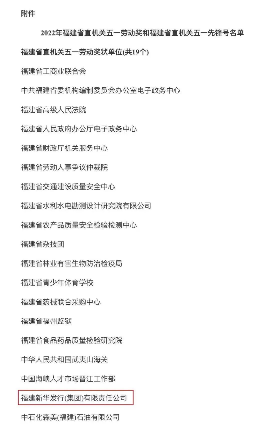 熱烈祝賀福建新華發行(集團)有限責任公司榮獲省直機關五一勞動獎狀