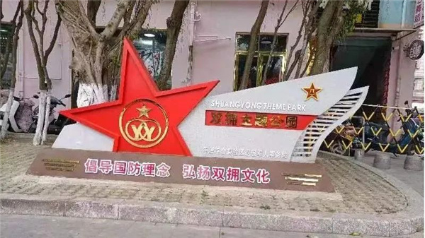 近年來,省退役軍人廳、省雙擁辦全面加強各地切實抓好雙擁陣地建設,通過完善雙擁特色項目,打造國防教育精品工程,將雙擁元素與自然景觀和諧融為一體,使雙擁基礎設施服務功能持續提升,讓廣大市民在休閑娛樂中潛移默化地接受雙擁文化和國防知識熏陶,增強全民國防觀念和雙擁意識,激發全民愛國擁軍熱情,形成全社會擁軍的良好氛圍。 平潭綜合實驗區雙擁主題公園 為營造雙擁創建的濃厚氛圍,鞏固軍民共建魚水情誼,實驗區精心打造的首個雙擁主題公園于日前建成。該公園位于城區中心地段,占地面積63179㎡,依托現有的翠園公園,在涼亭、草地等園林景觀基礎上因地制宜設計雙擁文化元素。