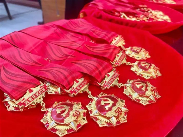 在“七一”到來之際 我省各地通過形式多樣的方式為黨獻禮 為老黨員代表頒發 “光榮在黨50年”紀念章 發放“政治生日賀卡” 一起重溫入黨誓詞 …… 廈門市 6月28日,廈門市退役軍人事務局舉辦“光榮在黨50年”紀念章頒授儀式,為31名黨齡達到50年的軍休干部代表頒發紀念章。