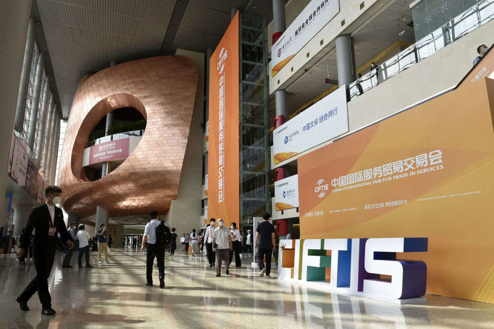 9月3日拍攝的2022年服貿會國家會議中心展館內景。新華社記者 魯鵬 攝