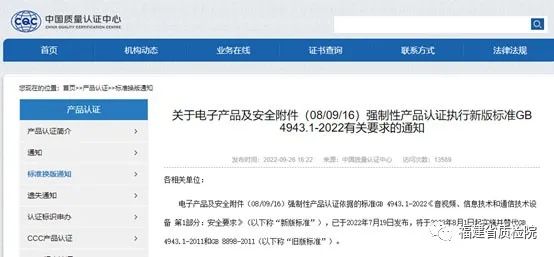 GB 4943.1-2022《音視頻、信息技術和通信技術設備 第1部分:安全要求》是事關消費者人身安全的強制性國家標準,也是08、09、16大類11種小類的產品CCC認證的檢測依據,包括電視機、計算機、顯示器、電源適配器等都必須滿足該標準的要求。 2022年9月23日,國家認監委TC03專家組發布《關于GB 4943.1-2022標準換版認證實施方案的技術決議》;9月26日,中國質量認證中心發布《關于電子產品及安全附件(08/09/16)強制性產品認證執行新版標準GB 4943.1-2022有關要求的通知》,明確了換版方案,并規定所有舊版標準認證證書轉換工作最遲應于2024年7月31日前完成。