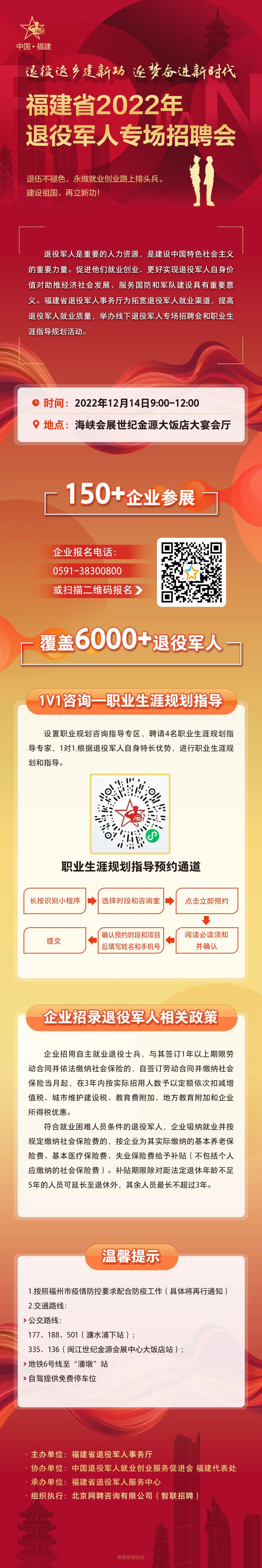 預約報名!福建省2022年退役軍人專場招聘會12月14日舉辦
