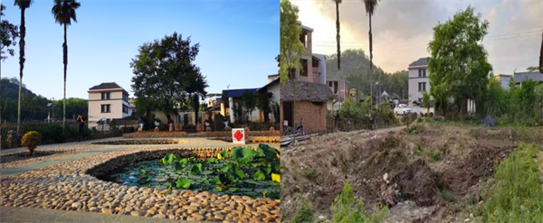 ▲客家“藍(lán)天”文化公園前后對(duì)比圖 在福地村的步行道兩側(cè)都有用石頭雕刻的不同形態(tài)的福字,打造了“福文化”的百福石。村里軍民共建的“藍(lán)天”文化公園,是村民休閑登山的好去處。一條條致富路、連心橋,村民親切地稱為“軍民連心路”。幾年前,這里還是雜草一片,泥濘的道路和惡劣的環(huán)境令人望而卻步。如今,這樣的巨變不僅是大山深處脫貧致富的縮影,更是94691部隊(duì)精準(zhǔn)助力脫貧攻堅(jiān),全面推進(jìn)鄉(xiāng)村振興的生動(dòng)體現(xiàn)。 2017年,94691部隊(duì)與福地村建立幫扶對(duì)子,按照“五個(gè)振興”的總體要求,因地制宜,精準(zhǔn)施策,制定“三步走”規(guī)劃,一年接著一年干,先后支持村里20余個(gè)項(xiàng)目建設(shè),累計(jì)投入150余萬元,福地村發(fā)生了翻天覆地的變化。