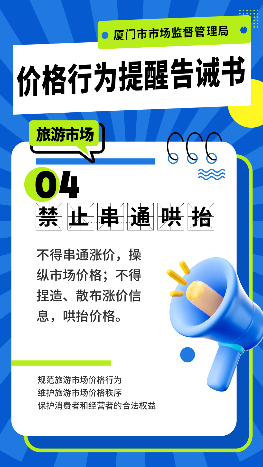 廈門市場(chǎng)監(jiān)管部門向全市旅游行業(yè)經(jīng)營(yíng)者提醒告誡: