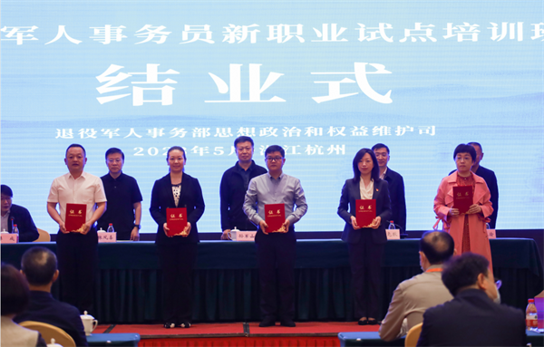 近日,退役軍人事務員新職業試點培訓班在浙江省杭州市舉辦。圖為結業式上,為80名通過考核的全國首批退役軍人事務員培訓師資頒發師資證書。 11個省(區、市)退役軍人事務廳(局)和退役軍人服務中心有關同志,首批退役軍人事務員培訓師資及工作人員,共130人參加培訓。 |