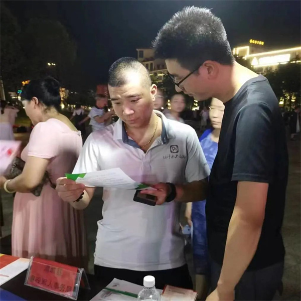 浦城縣丹桂廣場舉辦2023年百日千萬招聘專項行動暨大中專畢業生專場招聘會 “老班長,晚上好!您是過來找工作嗎?有看到比較合適的崗位嗎?”招聘會現場,浦城縣退役軍人事務局特別設立政策咨詢專區和就業推薦專區,為退役軍人免費提供就業創業政策咨詢和就業崗位推薦。本次專項招聘會共有58家企業參會,為退役軍人提供就業崗位千余個,涵蓋銷售、新媒體、互聯網、安保等多個行業,有5名退役軍人初步達成就業意向。