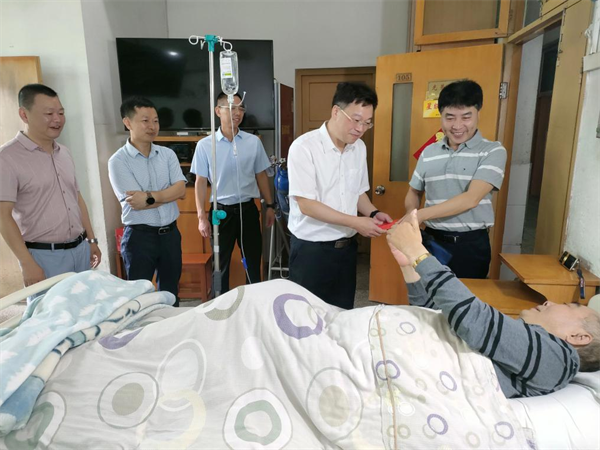 7月31日,蔡靜南副廳長一行前往榮軍醫院病房逐一看望榮軍休養員并送上慰問金