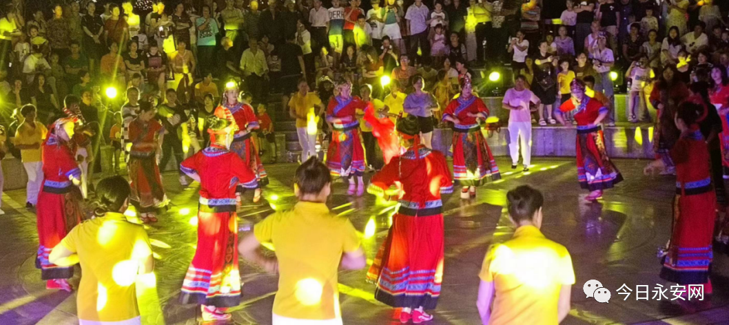 活動現場,具有畬鄉特色的《祈福靈刀》《小村來客》、《煙盒舞》《歡樂畬寨竹竿舞》等精彩節目輪番上演,異彩紛呈。在輕柔的夜色中,伴隨著一曲曲嘹亮歡歌、一陣陣雷動掌聲,各地游客和畬族人民“以舞會友”,手牽著手,肩靠著肩,圍著熊熊篝火,激情互動,青春活力與畬鄉風情有機融合,勾勒出了民族大團結最美的“同心圓”。
